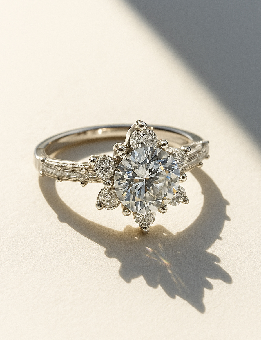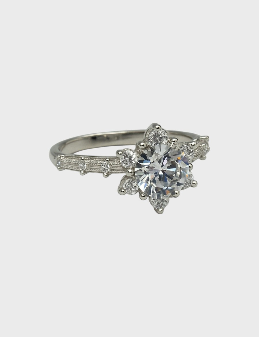 Lotus çiçeği gibi karanlık sulardan doğup ışığa uzanan bu yüzük, saflığı, zarafeti ve yeniden doğuşu simgeler. Her detayı, lotus’un eşsiz güzelliğini yansıtarak parmakta adeta bir çiçek gibi açılır.