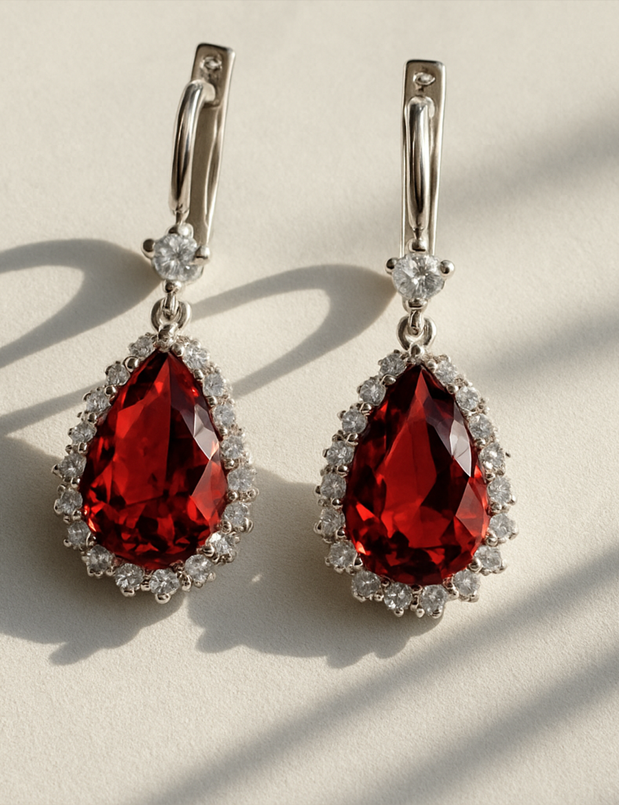 Amora Agate Earrings, Amora Agate Kolye’nin zarif enerjisini tamamlayan kusursuz bir çift olarak tasarlandı. Her biri 925 ayar gümüşten üretilmiş olan bu küpelerde, merkezde yer alan fancy kesim kırmızı akik taşları yaşam enerjisini, gücü ve tutkuyu temsil eder. Akik taşını çevreleyen parlak mikro taşlar ise ışığı her açıdan yakalayarak büyüleyici bir parlaklık sunar. Damla formu, zarafetin sembolü olarak tasarıma duyusal bir akış katar. Hem günlük kullanımda sade bir ışıltı, hem de özel davetlerde sofistike bir etki yaratır. Amora Agate Earrings, doğanın enerjisini zarif bir tasarımda birleştirerek her stile anlamlı bir dokunuş katar.