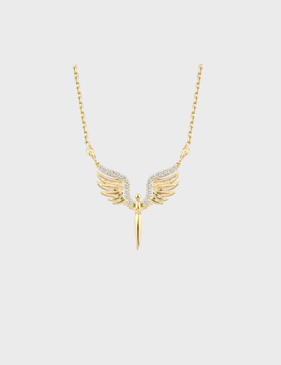 Archangel Aureum, ilahi gücü ve koruyucu enerjiyi temsil eden Mikail meleğinden esinlenilerek tasarlandı. Tamamı 925 ayar gümüş üzerine uygulanan 14 ayar gold kaplama, tasarıma sıcak bir ışıltı ve lüks bir görünüm kazandırır. Melek kanadı formundaki detaylar, cesareti, ışığı ve korumayı simgelerken, zarif şekilde yerleştirilen fancy kesim taşlar her hareketle ışığı yakalayarak Mikael’in “ışığın savaşçısı” enerjisini yansıtır. Archangel Aureum, hem ruhsal anlamı hem de estetik zarafetiyle öne çıkan özel bir tasarımdır. Günlük kullanımda sade bir zarafet sunarken, özel anlarda da anlamlı bir şıklığın simgesine dönüşür.