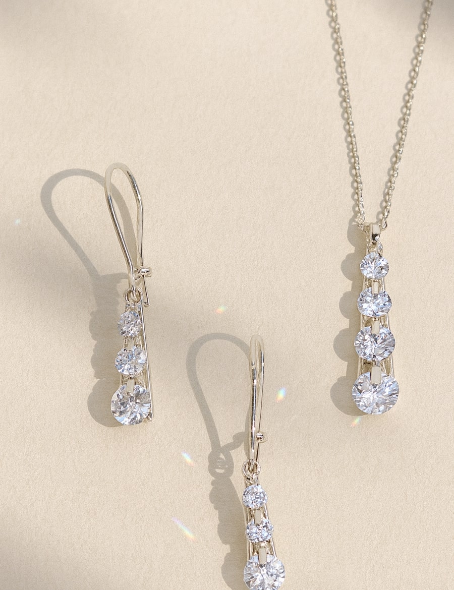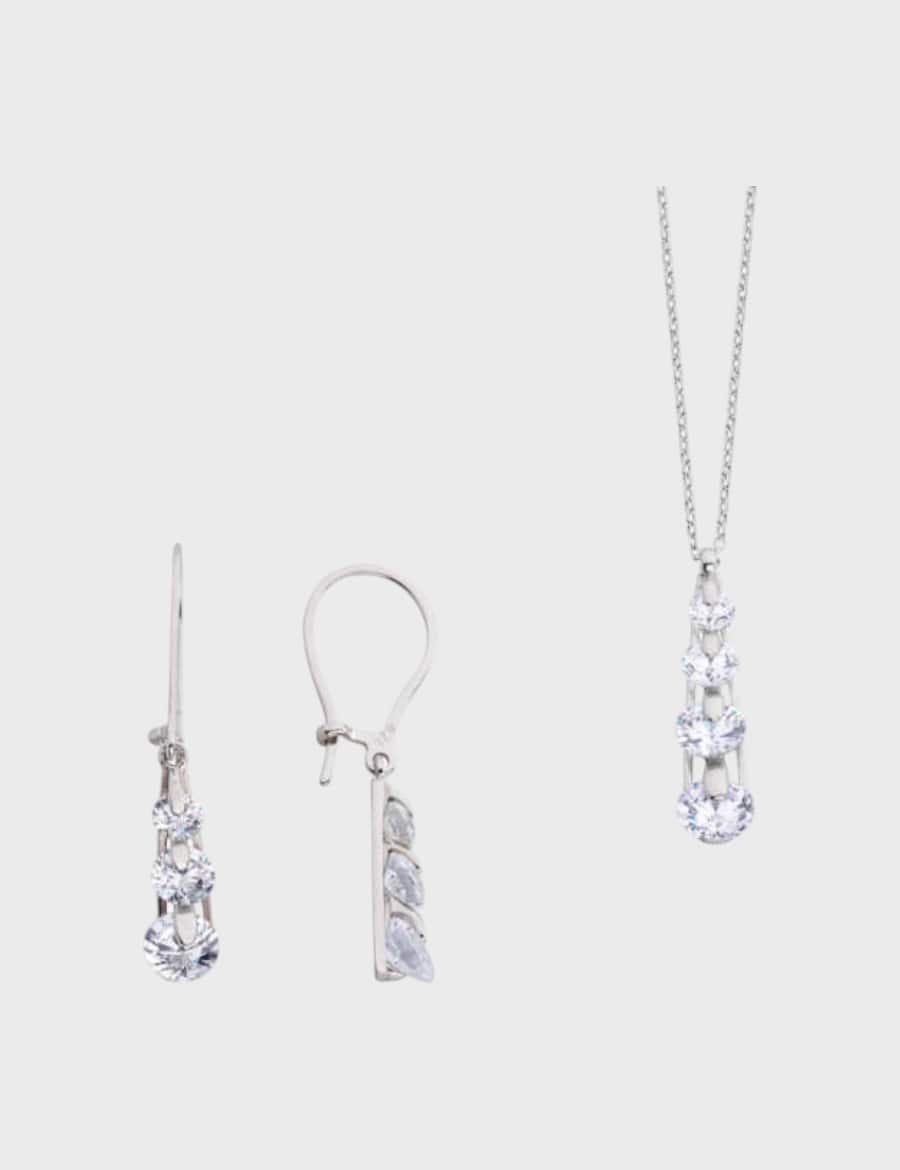 Aurora Silver Set, üç taşın ışıltısını gümüşün sade ve sofistike tonuyla bir araya getiriyor. Modern çizgisiyle minimal bir şıklık sunarken, parlak taşların kusursuz uyumu seti hem gündelik stilin zarif bir tamamlayıcısı hem de özel anların göz alıcı bir parçası haline getiriyor. Rose gold versiyonundaki sıcak ışıltının aksine, Aurora Silver dinginlik ve saf bir parlaklık arayanlar için ideal bir seçimdir.