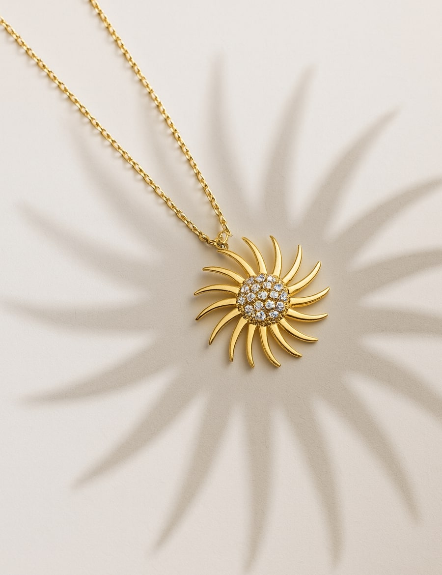 Aurora Solaris Gold, güneşin doğuş anındaki sıcak enerjiden ilham alarak tasarlandı. 925 ayar gümüş üzerine uygulanan altın kaplama, ışığın gücünü modern bir formda yansıtır. Merkezinde yer alan mikro taşlar, gün doğumunun parlaklığını hatırlatırken; dışa uzanan zarif kollar güneşin yaydığı enerjiyi simgeler. Sade ama etkileyici çizgisiyle her stile uyum sağlar, ışığını üzerinde taşımak isteyenler için özel olarak tasarlandı.