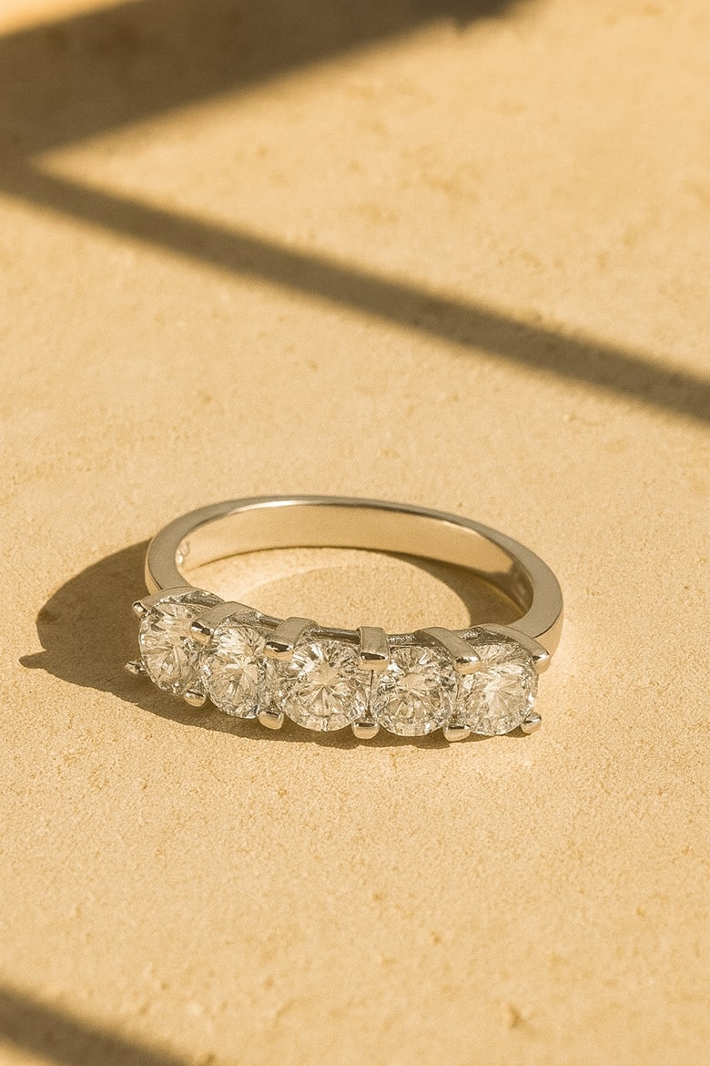 Eternal Five yüzüğü, minimal tasarımıyla modern şıklığı, beş pırlantanın kusursuz uyumuyla da zamansız bir ihtişamı yansıtır. Her taş; aşkın, bağlılığın, güvenin, dostluğun ve sadakatin sembolüdür. Işıltısını gün ışığında da, özel anlarda da güçlü bir şekilde hissettiren bu yüzük; günlük stilinizi tamamlayan ince bir detay ya da ömür boyu taşınacak özel bir sembol olarak tasarlanmıştır.