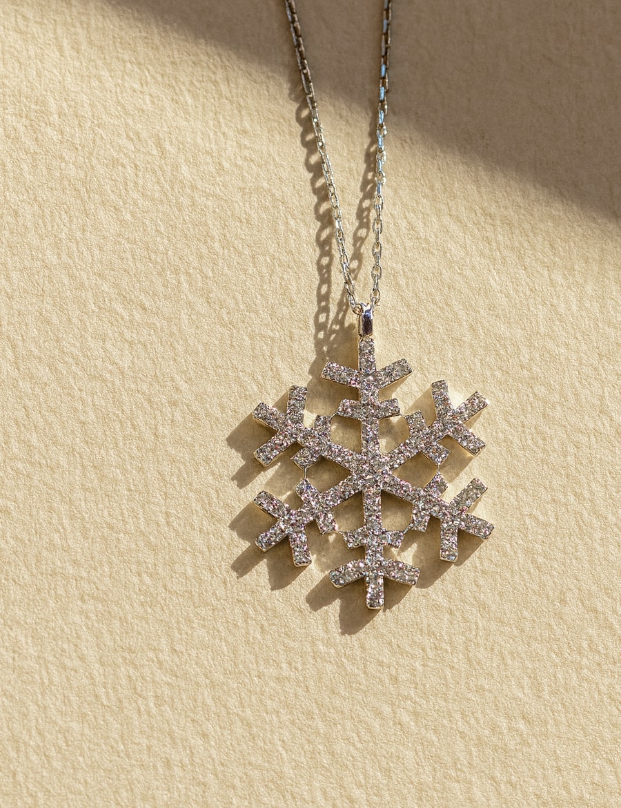 Glacia Argent, kışın sessiz zarafetinden ve doğanın kusursuz geometrisinden ilham alınarak tasarlanmıştır. Kar tanelerinin her biri birbirinden farklıdır; bu nedenle bu kolye, eşsizlik ve zarafetin sembolü olarak öne çıkar. Tamamı 925 ayar gümüş ile üretilmiş olup, yüzeyinde yer alan fancy kesim taşlar, karın kristal parlaklığını yansıtır. Soğuk gümüş tonuyla sade bir ihtişam sunarken, kar tanesi motifi doğallığın içindeki mükemmelliği temsil eder. Glacia Argent, her kombinde zarif bir dokunuş sunan, anlamlı ve zamansız bir parçadır. Kışın büyüsünü boynunda taşımak isteyen kadınlar için tasarlandı.