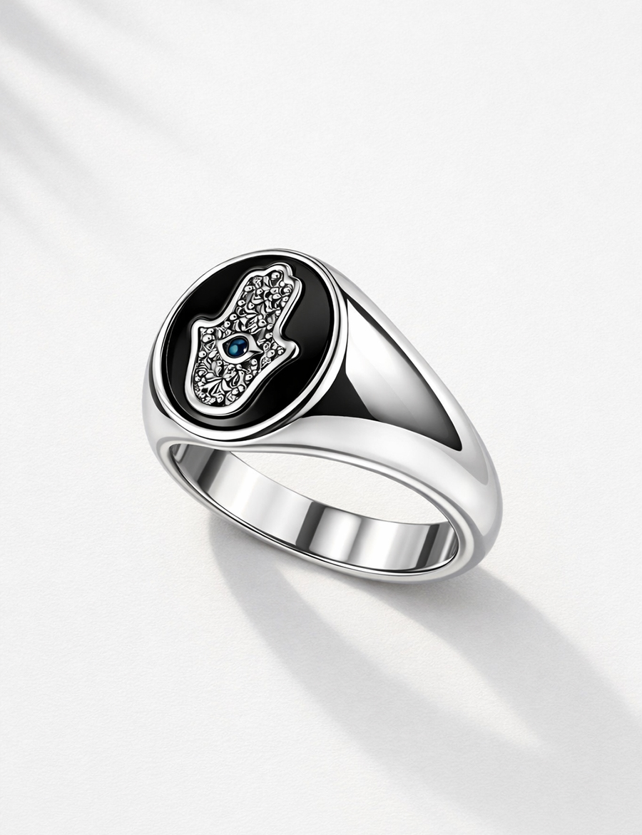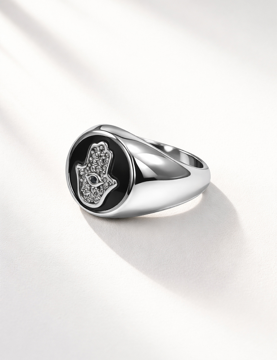 Hamsa Aura Ring Black, hem günlük kullanımda anlam taşıyan bir sembol, hem de modern ve lüks bir statement parçası arayanlar için mükemmel bir tercihtir.