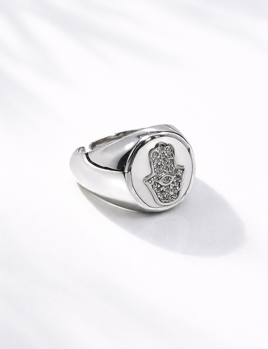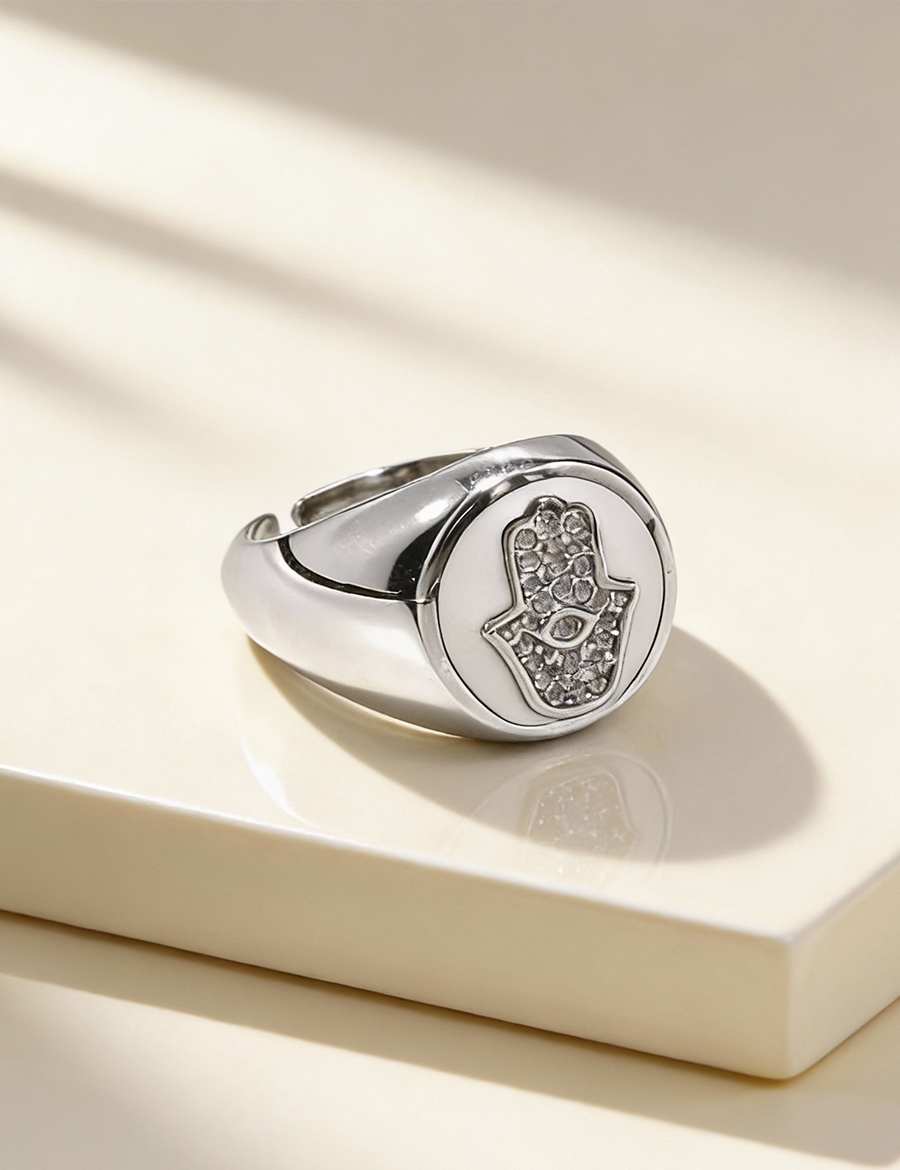 Unisex tasarımı sayesinde günlük stilinle kolayca uyum sağlar; ister minimal bir dokunuş, ister güçlü bir statement parça arıyor ol, Hamsa Aura Ring White her kombin için ideal bir tamamlayıcıdır.