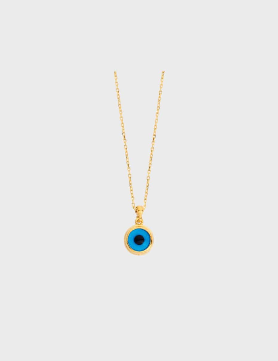 Lume Aureum, geleneksel nazar boncuğu sembolünü modern tasarım çizgileriyle yeniden yorumlar. Tamamı 925 ayar gümüşten üretilen bu zarif kolye, üzerine uygulanan 14 ayar gold kaplama sayesinde sıcak ve ışıltılı bir görünüme sahiptir. Ortadaki mavi nazar boncuğu, yüzyıllardır negatif enerjiden korunma ve huzurun sembolü olarak kabul edilir. Gold tonun lüks hissiyle birleşen bu tılsım, hem estetik bir aksesuar hem de anlam dolu bir koruma objesidir. Lume Aureum, klasik bir anlamı çağdaş bir yorumla taşıyan zamansız bir takıdır — sade şıklığın ve anlamlı zarafetin birleşimi.