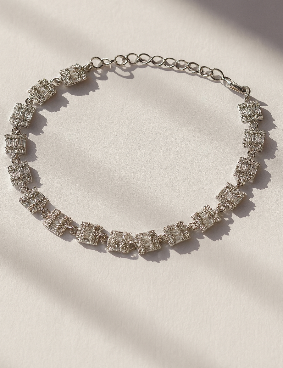 Lumiere, Fransızca “ışık” kelimesinden ilham alarak tasarlandı. Her bir baget taşın kesimi, ışığı en saf haliyle yansıtmak üzere özel olarak yerleştirildi. Bu sayede bileğinizde büyüleyici bir ışıltı oluşturur. 925 ayar gümüş üzerine işlenen zirkon taşlar, zarif bir ışıltı dengesi sunarken; kare form dizilimi modern bir zarafet hissi verir. Ayarlanabilir zincir yapısı sayesinde her bileğe mükemmel uyum sağlar. Günlük kullanımda zarif bir dokunuş, özel davetlerde ise sofistike bir parıltı isteyenler için ideal. Lumiere, zamansız ışıltısıyla her kadının mücevher koleksiyonunda yer alması gereken bir parça.