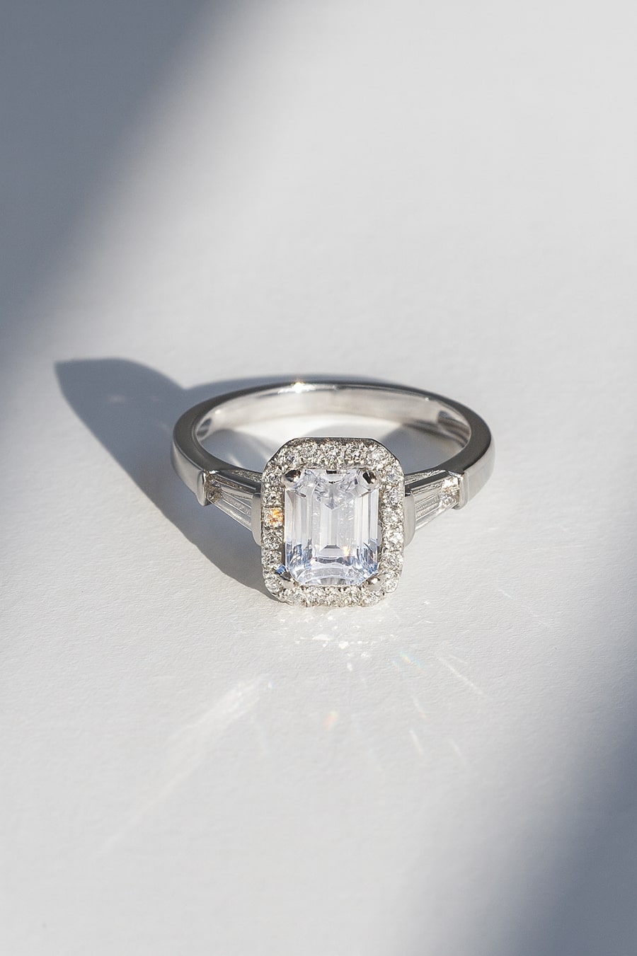 Lumiere yüzük, baget kesimin geometrik zarafetini ve kusursuz parlaklığını merkezine alıyor. Çevresini saran pırlantalar, taşın berraklığını daha da ön plana çıkararak güçlü ama sade bir ihtişam yaratıyor. Minimal hatlarıyla modernliği, keskin parıltısıyla da zamansız şıklığı temsil eden bu yüzük; hem günlük kombinlerde sofistike bir detay olarak hem de özel günlerde asil bir imza parçası olarak öne çıkıyor. Lumiere, ışığın en zarif yansımasını parmaklarınızda taşımanızı sağlar.