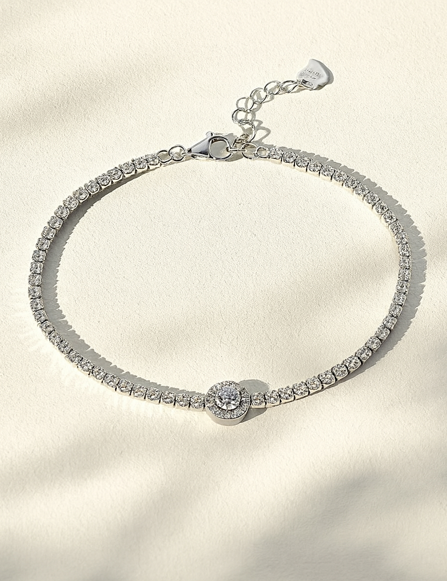 Luna Halo Gümüş Bileklik, minimalizmin zarafetle buluştuğu modern bir yorumdur. Bileklik boyunca sıralanan zirkon taşlar, ortadaki dairesel taşın etrafında bir “halo” efekti oluşturarak ay ışığı kadar saf bir parlaklık yansıtır. 925 ayar gümüş yapısı, uzun ömürlü dayanıklılıkla birlikte zarif bir görünüm sunar. Gündüz sade bir kombinle veya gece davetlerinde zarif bir dokunuş olarak kullanılabilir — her tarzla mükemmel uyum sağlar. Luna Halo, gecenin dinginliğini ve ayın parıltısını bileğinizde taşımak isteyenler için tasarlandı.