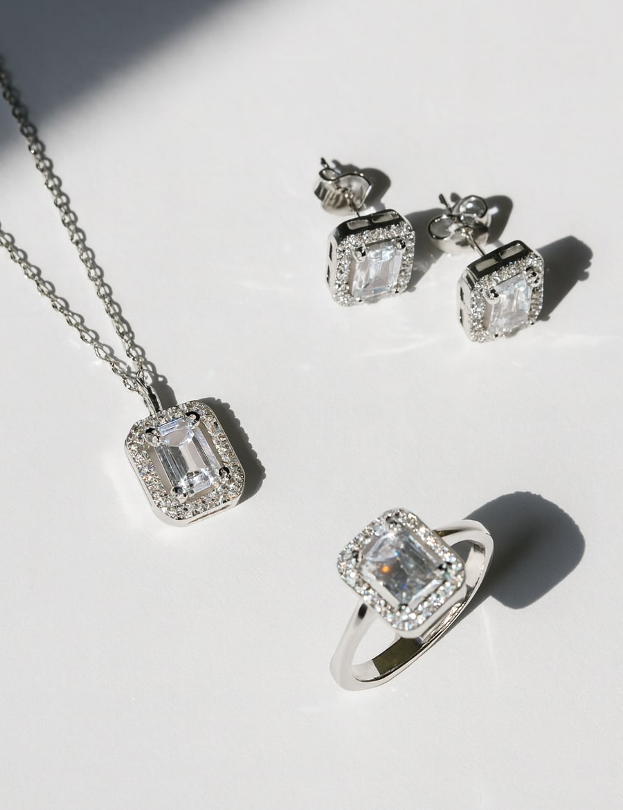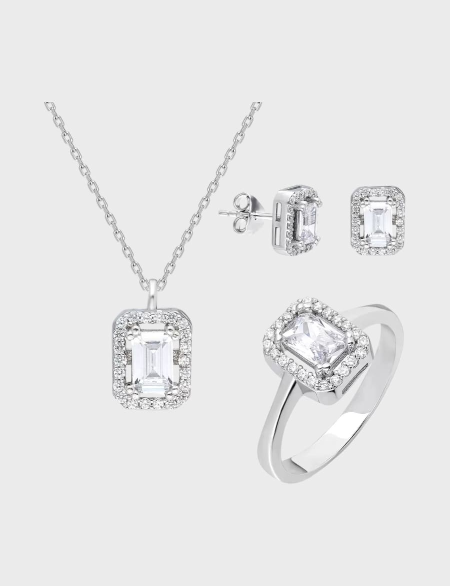 Regalia Set, köşeli zarafetiyle öne çıkan baget kesimin modern ihtişamını temsil ediyor. Kolye, küpe ve yüzükten oluşan bu set, merkez taşın net çizgilerini çevreleyen pırlantalarla ışıltılı bir taç gibi tamamlanıyor. Minimal ve güçlü formuyla gündelik stile sofistike bir incelik katarken, özel günlerde de göz kamaştırıcı bir ihtişam sunuyor. Zamansız tasarımıyla Regalia, Thinkamore’un asil ve modern şıklığını yansıtan ikonik bir set olarak öne çıkıyor.