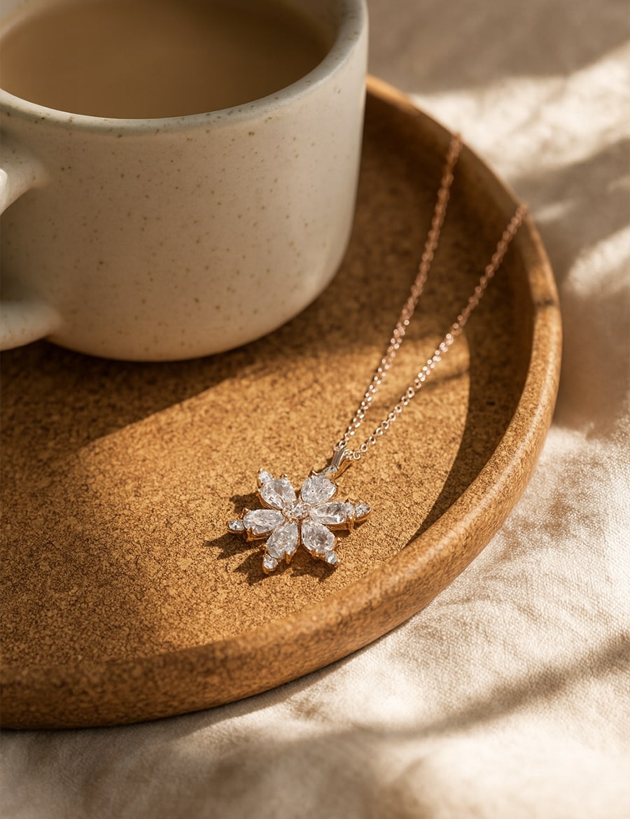 Sakura çiçeğinin yeniden doğuşu, saflığı ve zarafeti temsil eden bu tasarım; hem günlük kullanımda hem de özel günlerde sofistike bir stil yaratır. Doğal taşların enerjisiyle birleşen estetik formu, kullanıcıya hem zarafet hem de anlam katar.