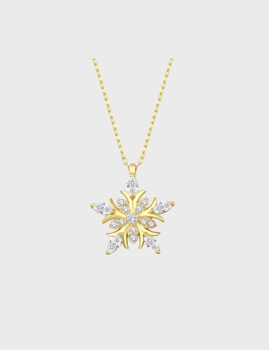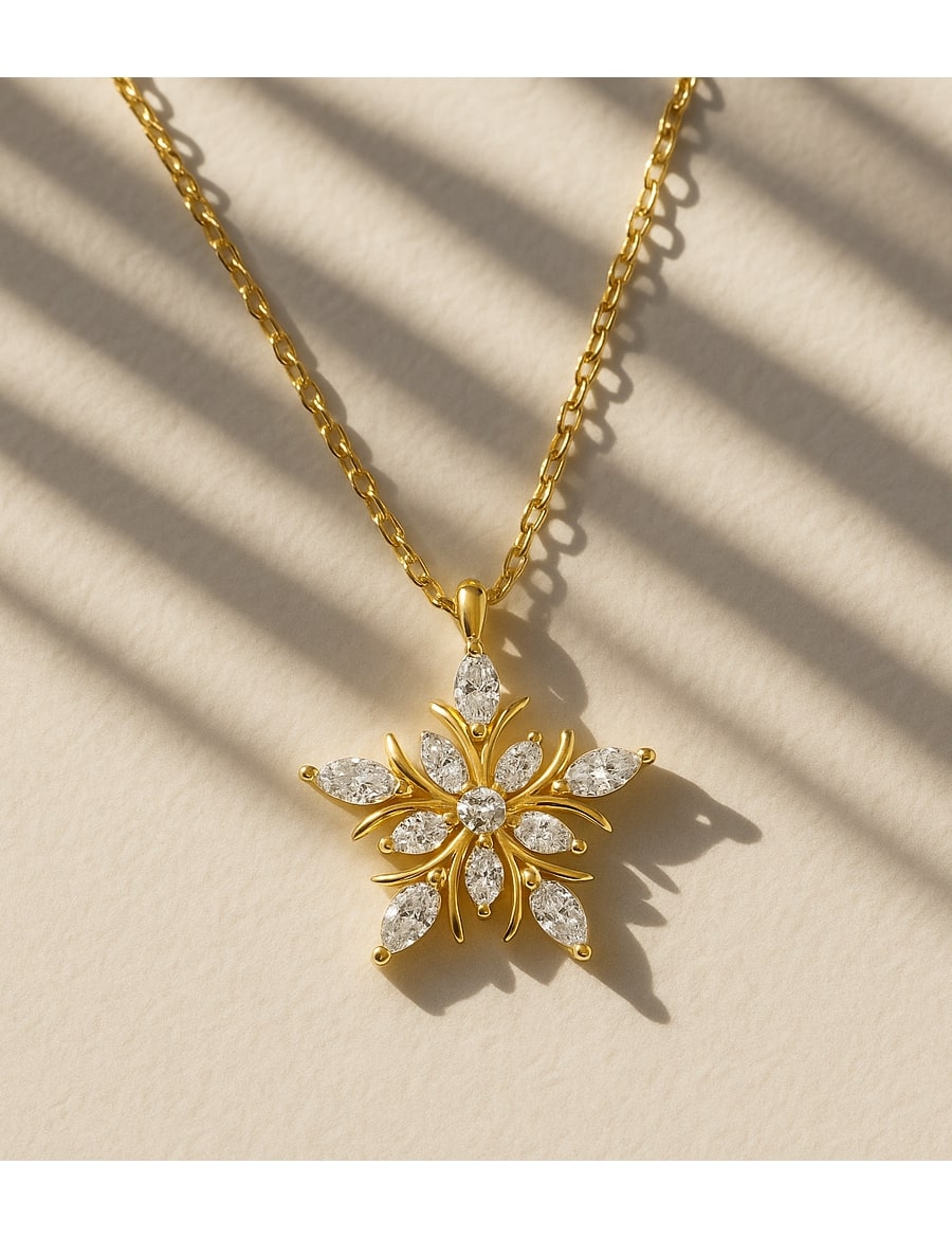 Stella Dore, gökyüzünün en parlak yıldızından ilham alarak tasarlandı. Zarif detayları, ışığın en saf halini yansıtan fancy zirkon taşları ve ışıltılı formu ile her an parlamanızı sağlar. 925 ayar gümüş üzerine uygulanan 14 ayar altın kaplama, tasarıma sıcak ve asil bir ton kazandırırken, taşların parlaklığı adeta gece gökyüzündeki yıldızları andırır. Hem gündelik zarafeti hem de özel anların ışıltısını taşır. Stella Dore, Thinkamore’un “ışığın içsel zarafeti” felsefesini temsil eder. Sade, güçlü ve her bakışta büyüleyici.